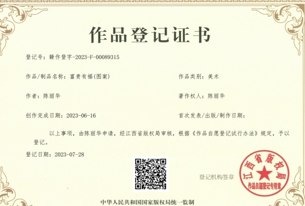 此次展会的“压轴之作”——中国红瓷板画《富贵有福》,堪称非遗文创精品的完美缩影。这件作品的创作者陈丽华老师,深耕陶瓷艺术数十载,不仅是省大师,更是传承人。为了打造这件作品,她耗费整整三年时光,从选材到成型,从工艺到立意,每一个环节都倾注了极致的匠心。“陶瓷创作没有捷径,尤其是非遗工艺,差一分一毫,都成不了精品。”陈丽华老师在谈及创作历程时说道,正是这份对技艺的坚守,让《富贵有福》从众多作品中脱颖而出。